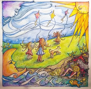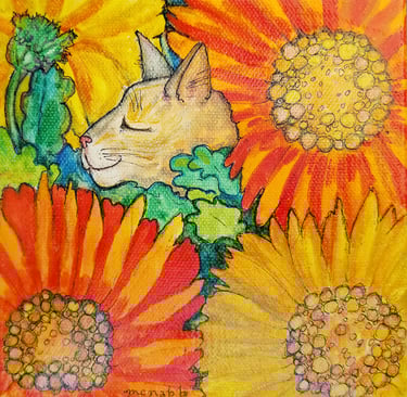 My favorite media are watercolor, watercolor pencil, colored pencil, and ink. I love combining these, and sometimes add pastels and metallic inks. I have recently started to experiment with alcohol ink and want to explore incorporating collage and texture. I mostly draw from my imagination and often start with curves and shapes that turn into interesting things. When I attempt to create something that looks real and serious, I’ll refer to a photograph or model. But my drawings have a mind of their own and whimsy creeps into everything I do. One drawing started out as a tree and turned into an elephant holding a rose.